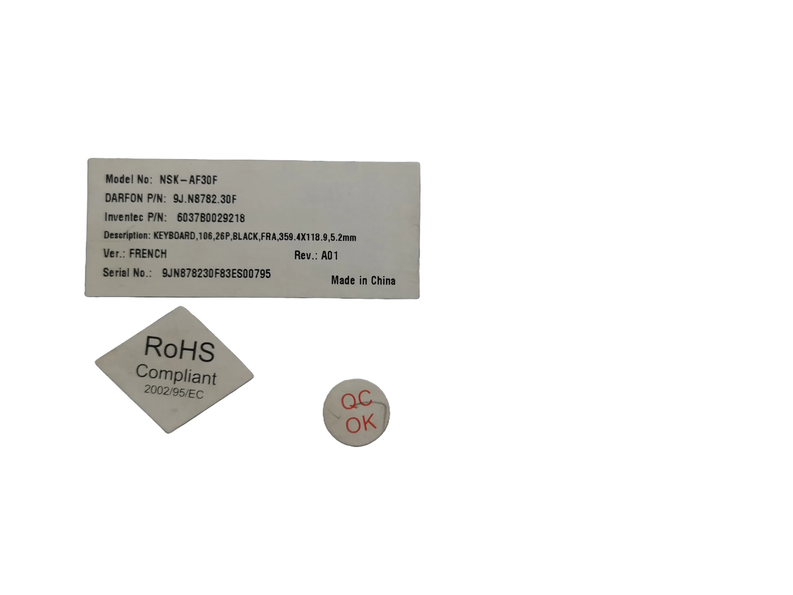 Tastatura laptop AZERTY, model NSK-AF30F 9J.N8782, în stare foarte bună, fără defecte vizibile.