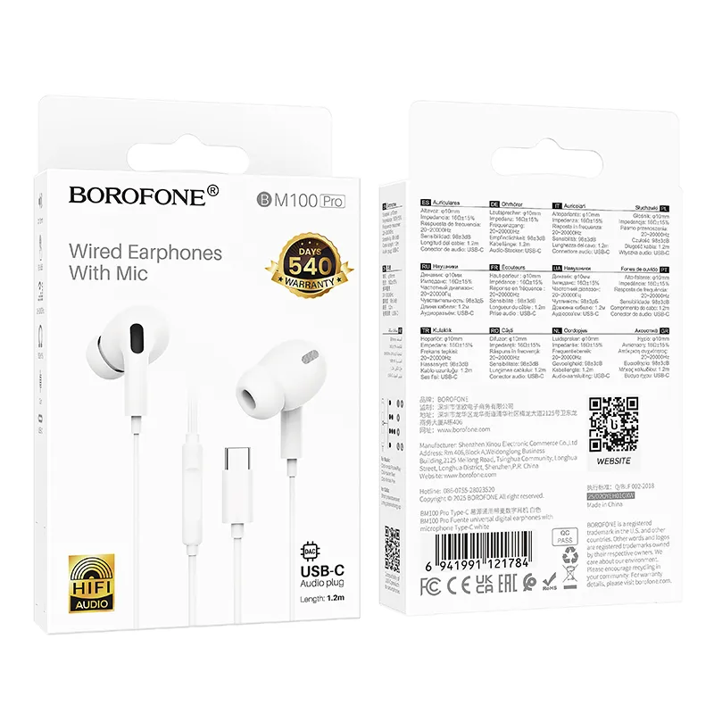 BOROFONE BM100 Pro, căști cu fir și microfon, mufă digitală Type-C, lungime 1.2m.